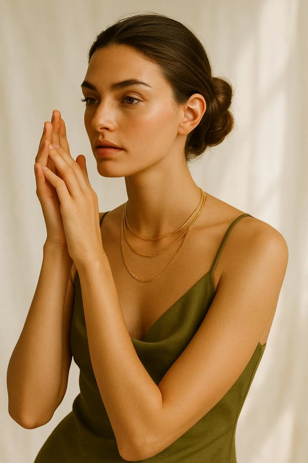 For necklaces, we use different stringing depending on the design, from natural or synthetic silk to nylon-coated steel rope. Each method is carefully chosen to ensure durability. To help extend the time between re-stringing, keep necklaces dry and remove them before bed. With regular wear, re-stringing may be needed every 12 to 18 months, depending on how often the piece is worn.